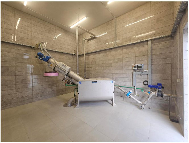 Nakon kondicioniranja mulja dodavanjem polimera, mulj se dehidrira centrifugom kako bi se odvojio od viška vode, nakon čega se transporterom odvozi direktno prema skladištu dehidriranog mulja.